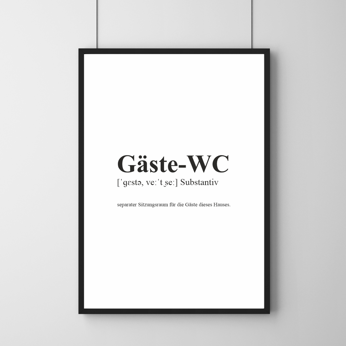 Poster - Definition Gäste-WC Verschönere dein Bad mit dieser Wand Dekoration. Dein Besuch findet das Klo mit diesem Kunstdruck auf Anhieb. Das Bild kann direkt auf der Tür angebracht werden, aber auch in der Gästetoilette an der Wand passt es super. Festes, hochwertiges 250 g Papier (matt). Poster ohne Rahmen und Deko. Wähle aus den folgenden verschiedenen Größen (B x H): - 14,8 x 21 cm (DIN A5) - 20 x 25 cm - 21 x 29,7 cm (DIN A4) - 29,7 x 42 cm (DIN A3) - 30 x 40 cm - 42 x 59,4 cm (DIN A2) - 50 x 70 cm (DIN B2) - 59,4 x 84,1 cm (DIN A1) - 70 x 100 cm (DIN B1) **Aufgrund von Monitoreinstellungen sind geringe Farbabweichungen vom dargestellten Artikelbild möglich!**